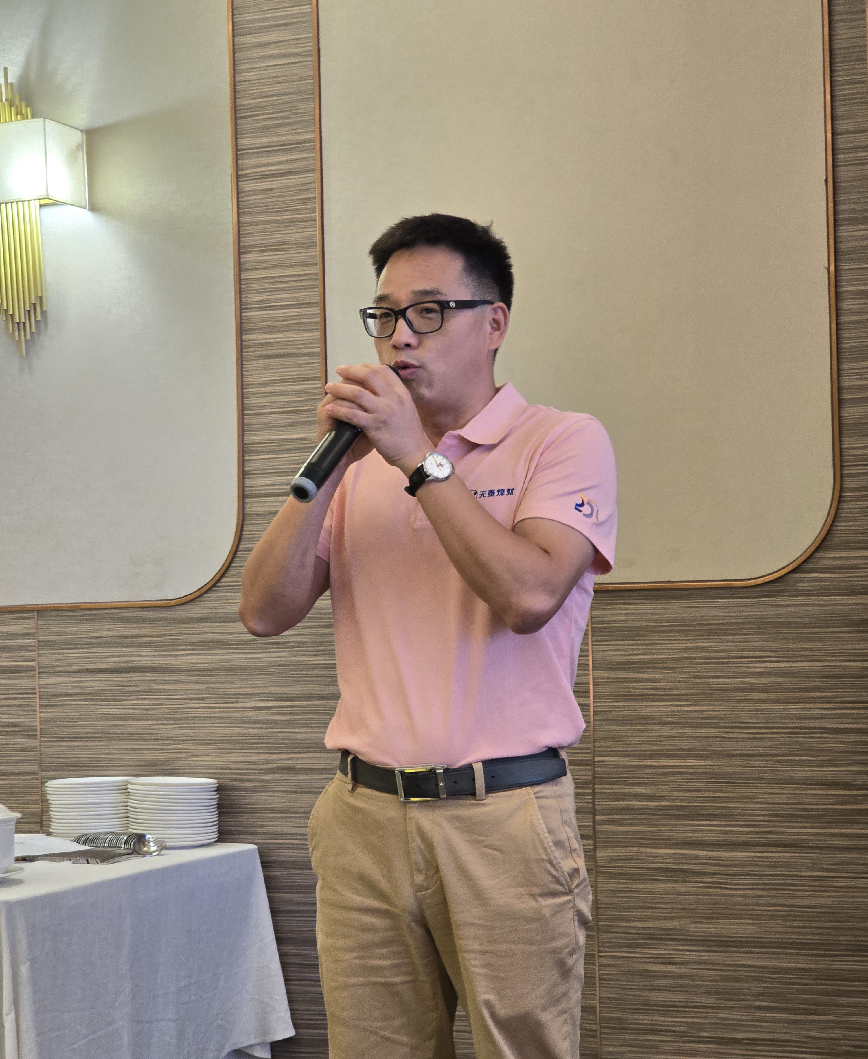 在埃森展技术交流讲座圆满结束后,天泰焊材以丰盛的晚餐答谢每一位合作伙伴。销售总监全传江先生代表ITW焊接集团大中华区副总裁/总经理 宋龄先生向各位合作伙伴表示欢迎和感谢,预祝各位合作伙伴未来业绩更上一层楼。