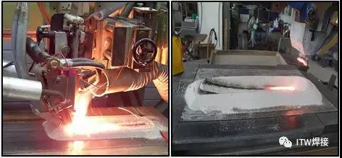 单层高速带极电渣堆焊技术与传统埋弧带极堆焊和双层电渣带极堆焊相比,适用电流更大,焊接速度更快(最高可达40CPM,是传统双层带极堆焊的两倍),可大大提高堆焊效率,降低生产成本。